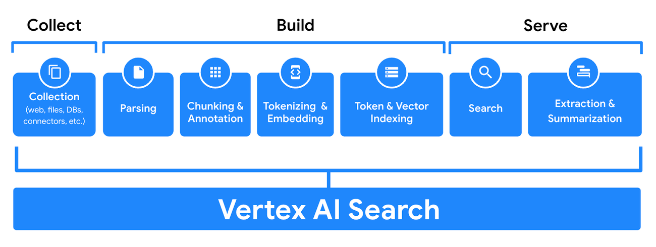 - Vertex AI Searchはクエリごとにキーワード検索とセマンティック検索の両方を同時に実行するハイブリッド検索エンジンを提供