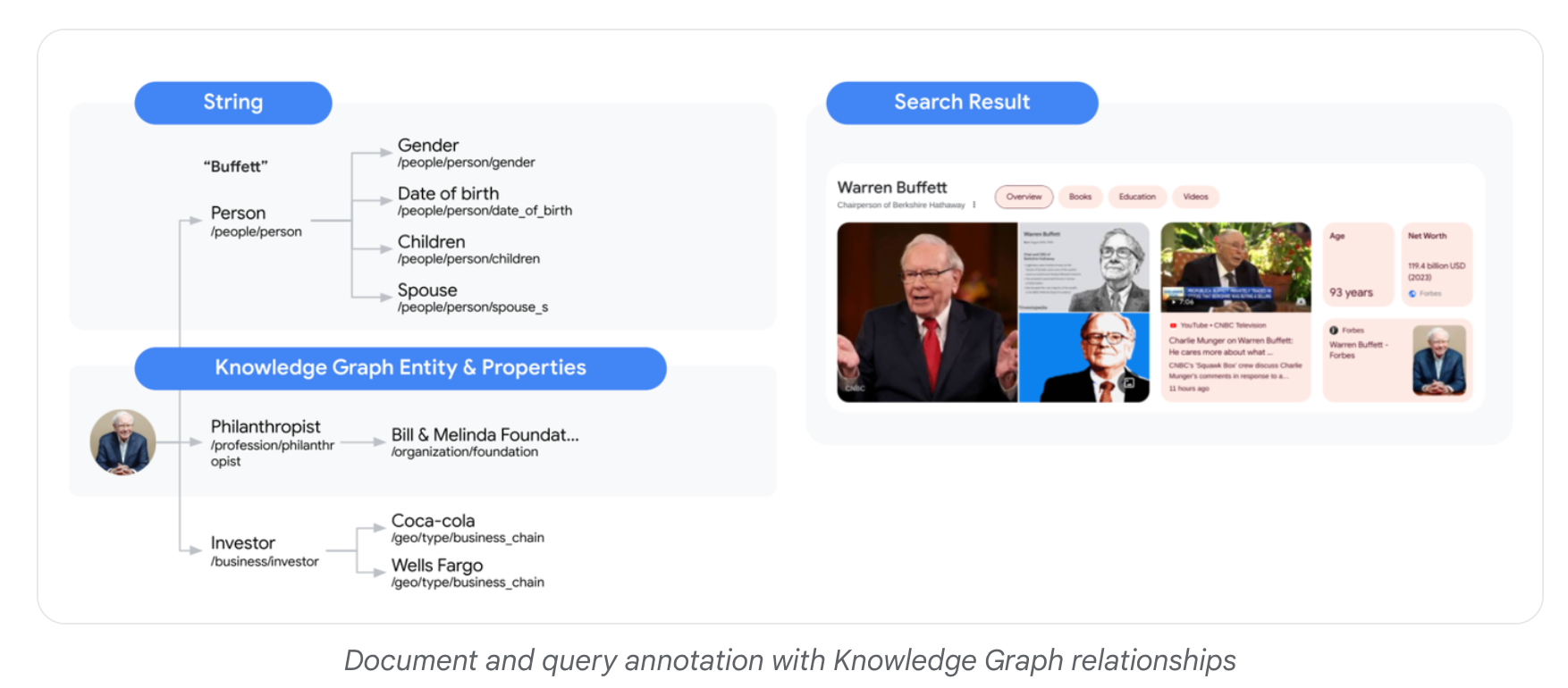 - Vertex AI SearchではGoogle検索のナレッジグラフからクエリに含まれている単語に対して自動的にアノテーションを追加する