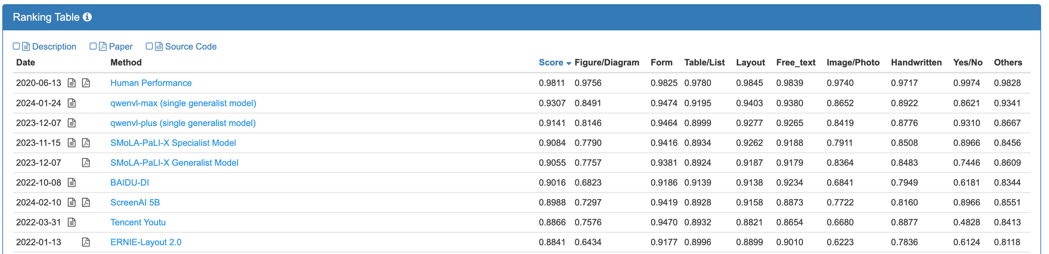 DocVQA leaderboard