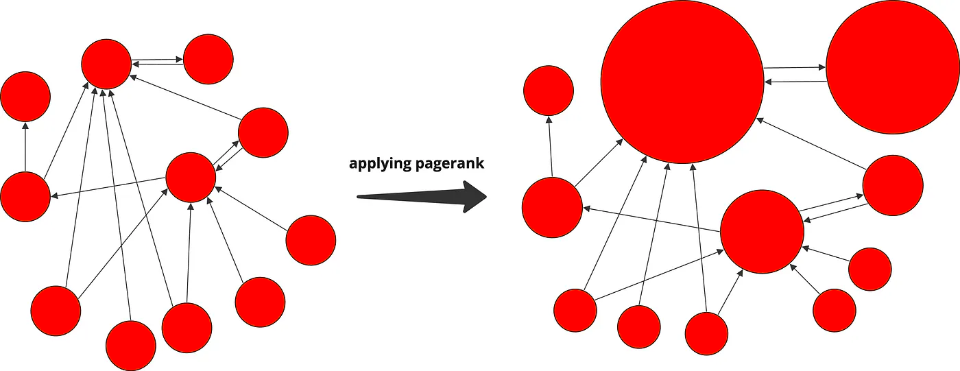 - あるノードのランクは隣接するノードが持つランクをエッジ数で割った値にする