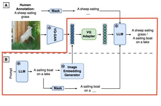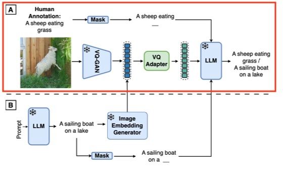 - VQ token(を整形したもの)と maskされたtextとを、LLMに入力