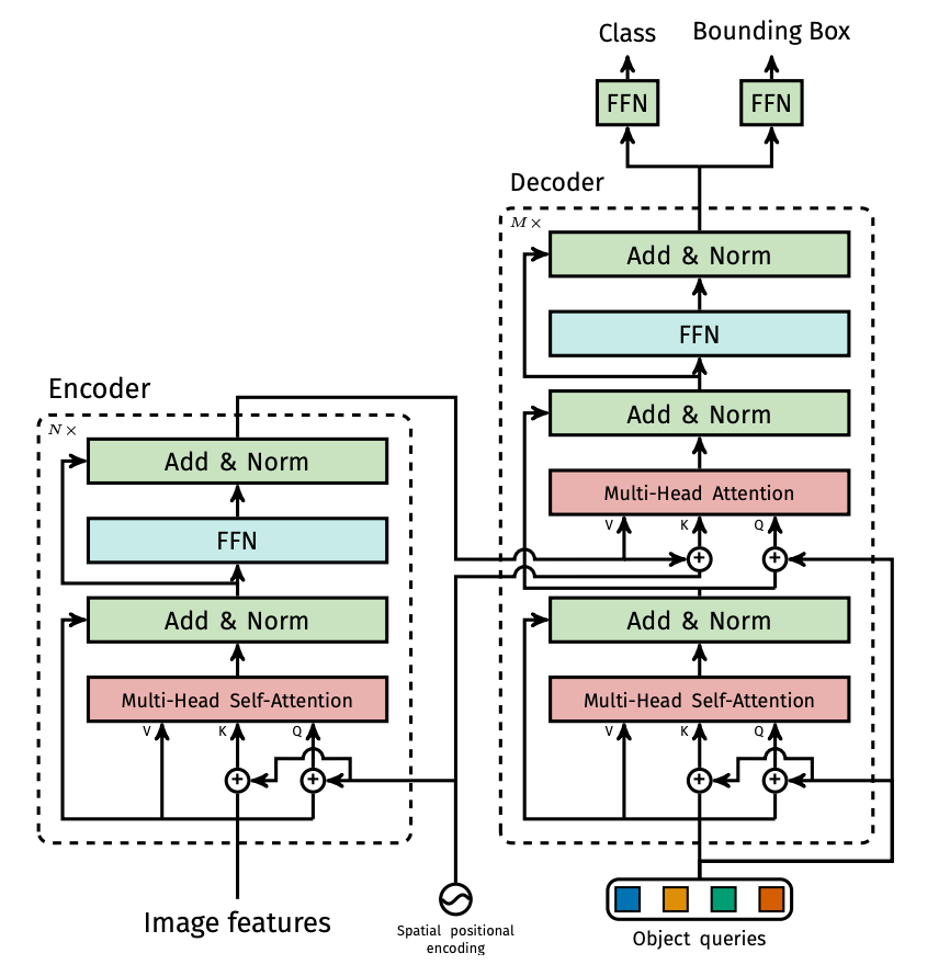 - 流れ: 画像 → backbone (embedding) → encoding → decoding → bbox,label