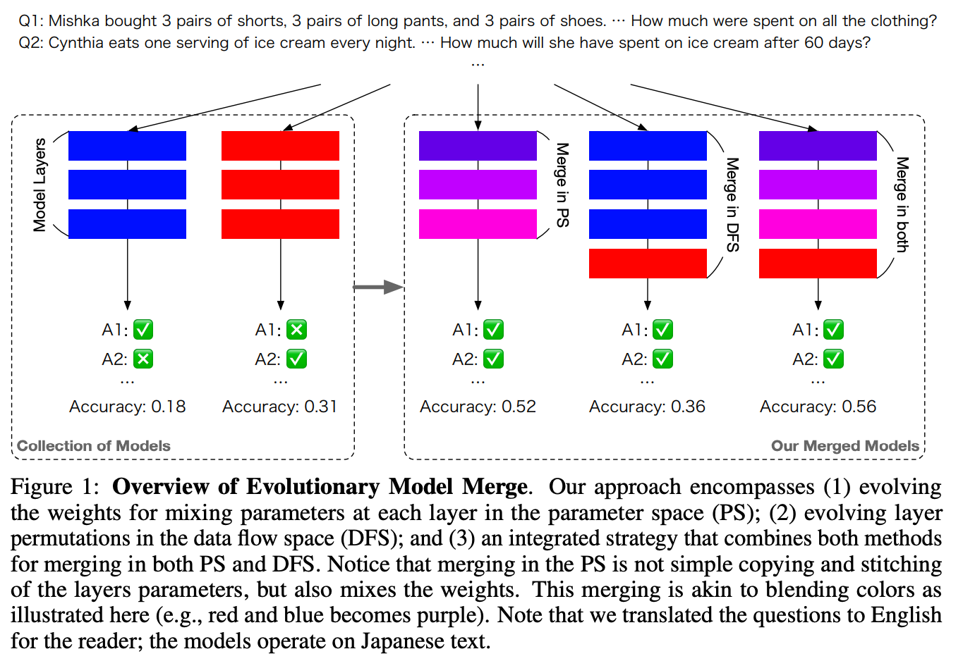 - この研究では、異なるモデルを組み合わせる最良の方法を発見するための進化的パラダイムである進化的モデルマージ (Evolutionary Model Merge) を提案