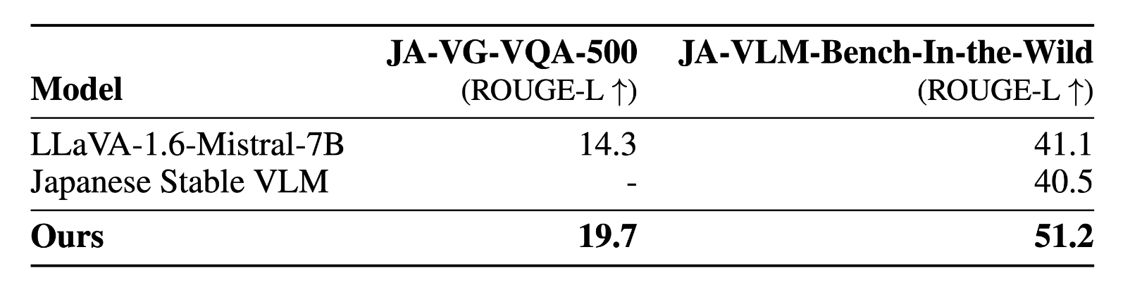 - 英語のVLM(LLaVa-1.6-Mistral-7B)と日本語のLLM(Shisa Gamma 7B v1)をマージ
