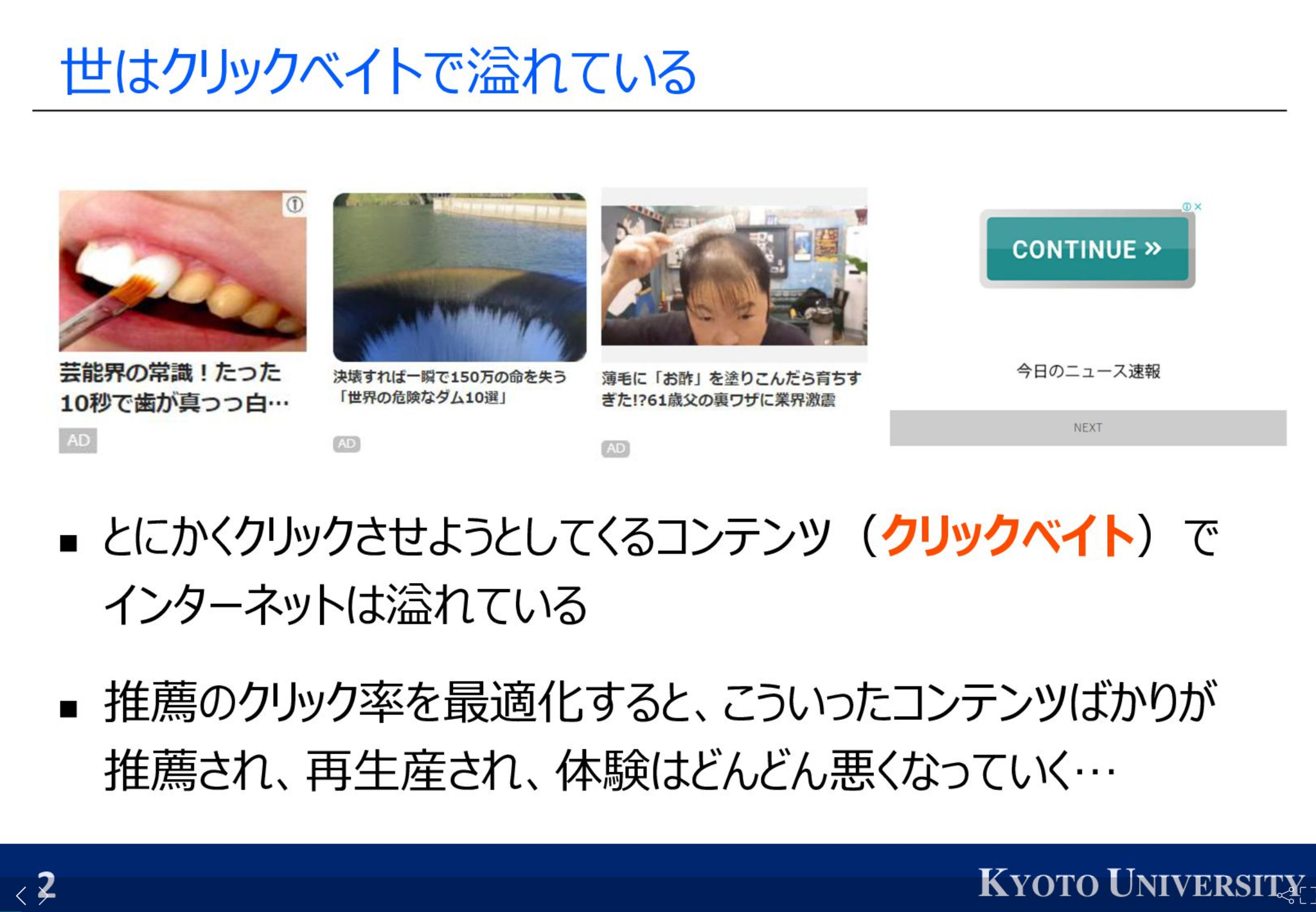 - クリック率の最大化だけを目指すと不幸な結果になる。