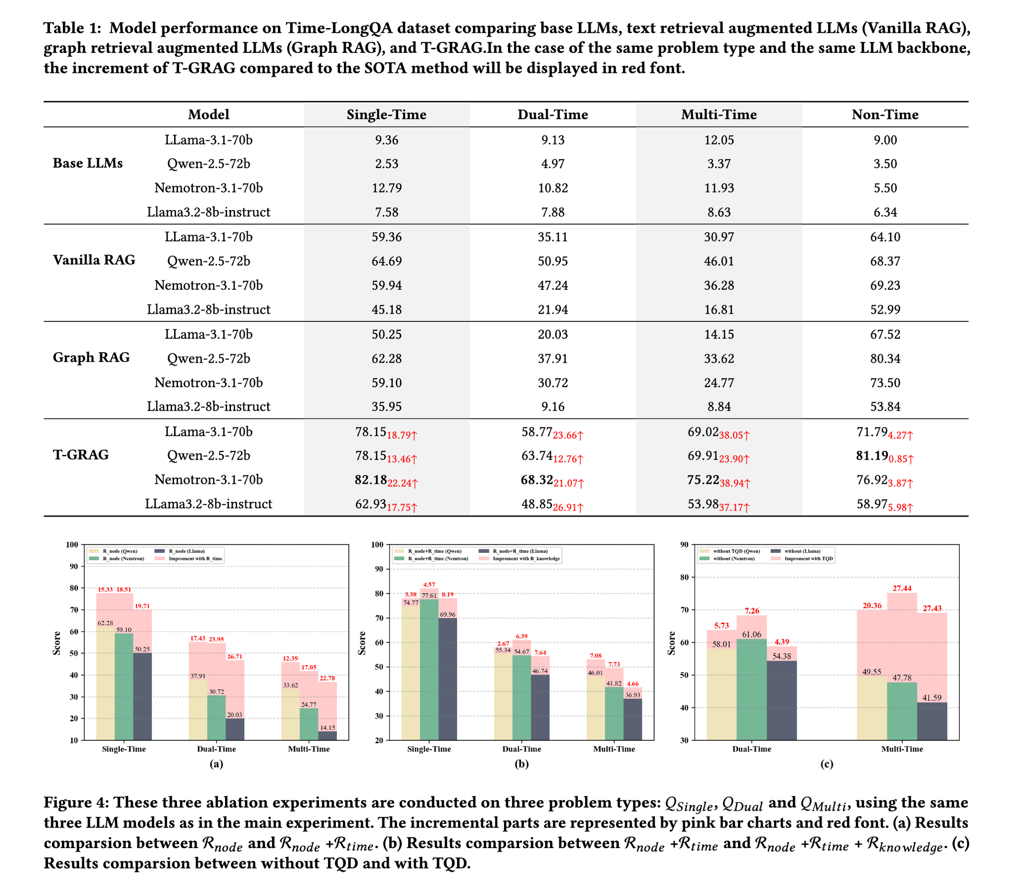 - これらの結果は、T-GRAGが検索精度と回答精度の両方を大幅に向上させ、適応的な時間認識型RAGシステムの強力な基盤を築くことを示している。
