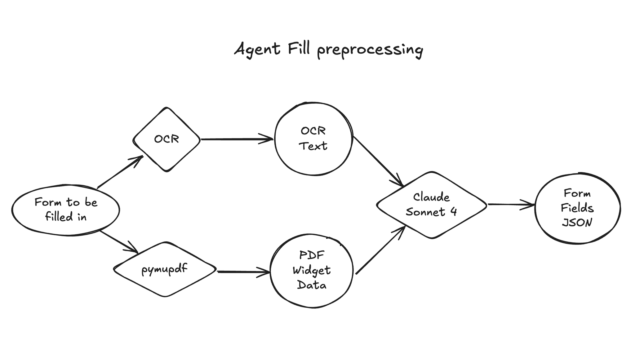- 記入対象のフォームの構造理解は、OCRしたテキストと、pymupdfで得たPDFウィジェットをClaude Sonnet 4に突っ込んで獲得。Claudeのスキーマ忠実性に期待。