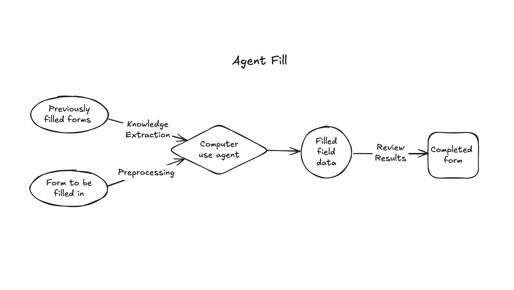 - 過去に記入されたフォームからの知識抽出による必要コンテキストの収集は生のPDFをGemini 2.5 Proに突っ込む。Geminiのマルチモーダル力への期待。