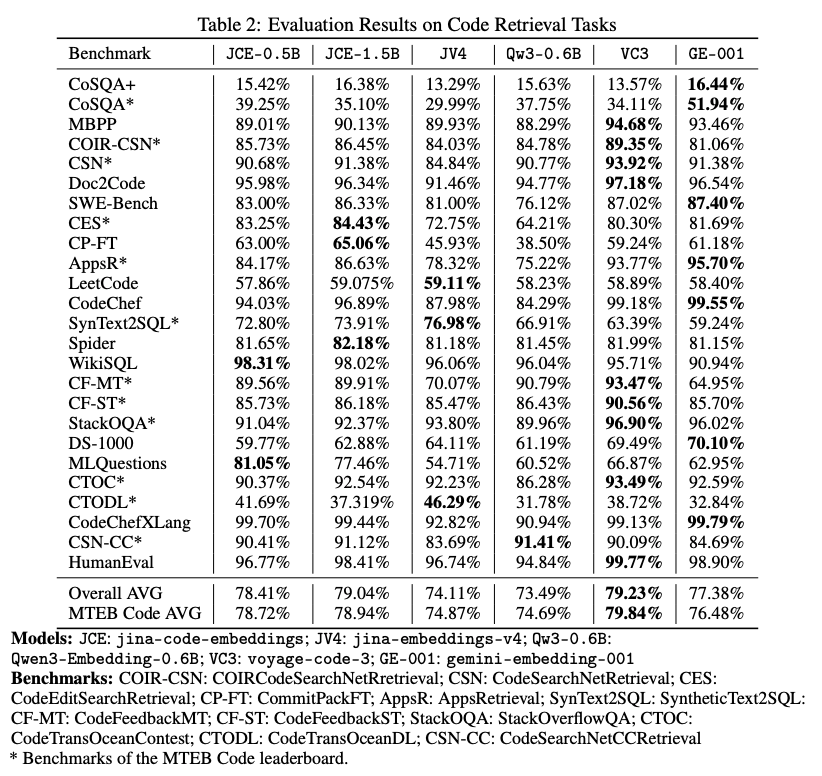 - retrievalタスクの様々なベンチマークで、同程度のサイズのモデル(Qw3-0.6B)や、少し大きいモデル(JV4, GE-001)にoutperform