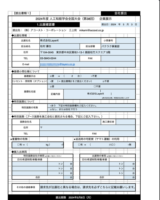 - JSAIの企業展示のPDF(2024年分を参考データとして、空の2025年分のPDFを埋めさせてみた)で実験