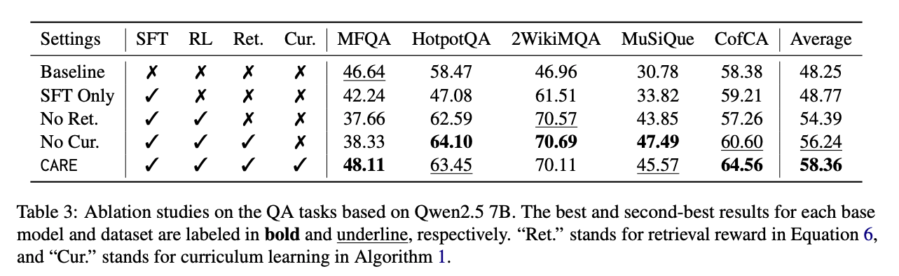 - No Retrieval Reward: 「 タグ内の内容が実際に入力Contextに存在している」ことへの報酬を除く