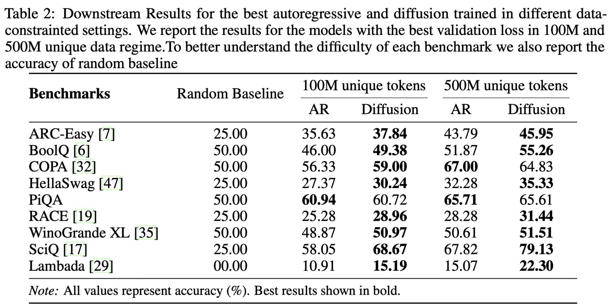 そういったデータ量が制限されている中で、各分野で成功している拡散モデル(ビジョン)と自己回帰モデル(テキスト)のどちらが良いのかを議論するのは有意義。
