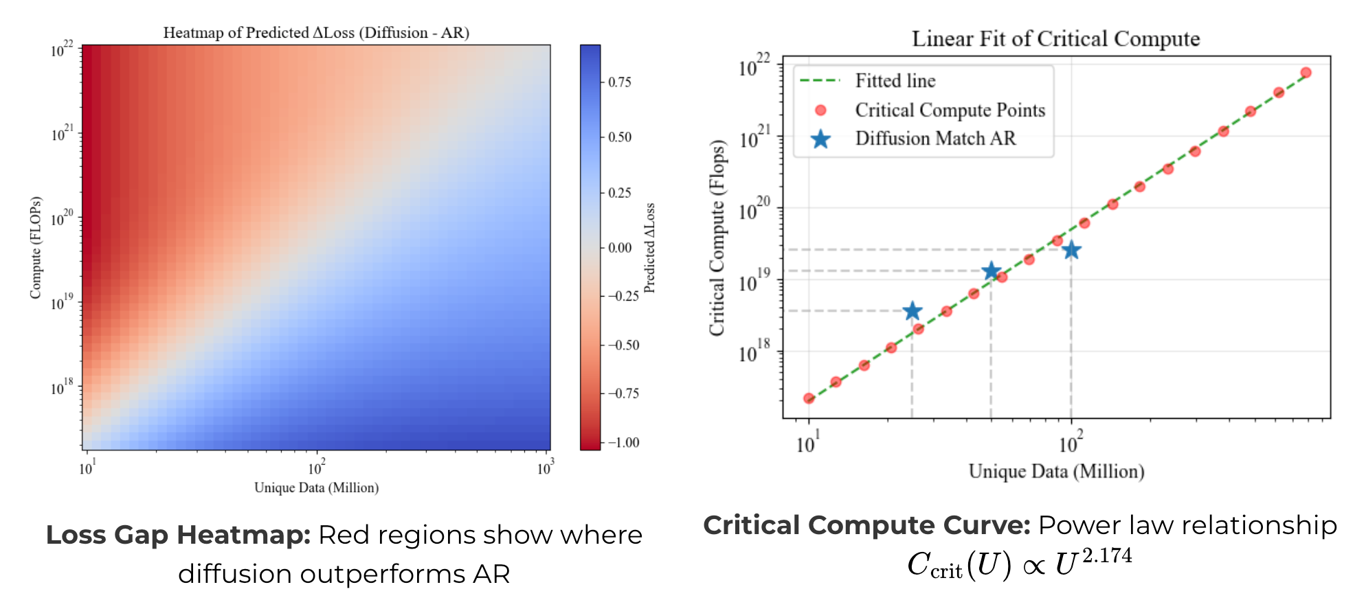 - 拡散モデルが自己回帰モデルを超えるのに必要な計算量は下式である程度予測できる。 詳しくは読めてないが、拡散モデルと自己回帰モデルの損失差から求めてるっぽい。