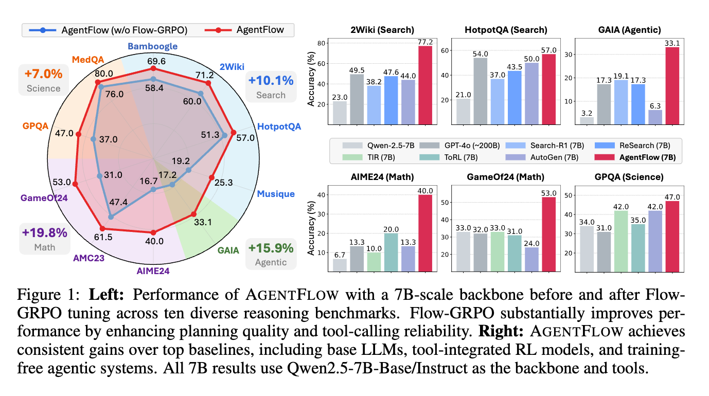 - 包括的な実験により、AGENTFLOWが強力なクロスドメイン性能を達成し、専門化されたベースラインや、より大規模なプロプライエタリモデルさえも凌駕することが示された。