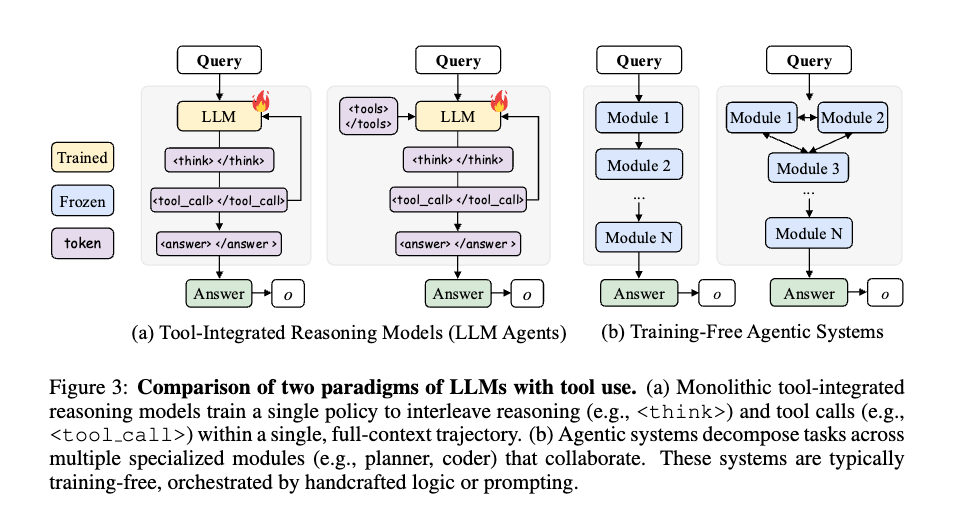 - そのようなシステムの多くは学習を必要とせず、事前学習済みのLLMを、手作りのロジックとプロンプトによって調整する。これは、AutoGen (Wu et al., 2024)、MetaGPT (Hong et al., 2024)、OctoTools (Lu et al., 2025)などのフレームワークに見られる。