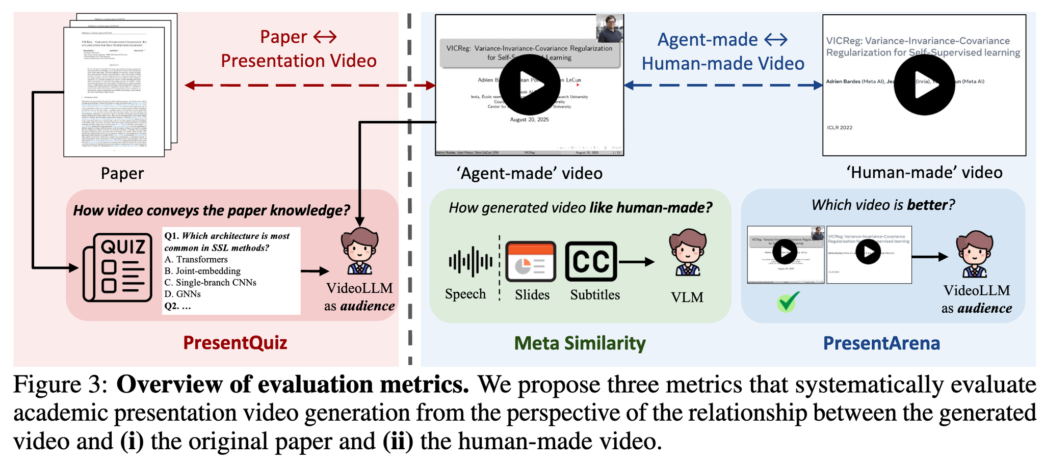 - Meta Similarity:人間が作成したようなプレゼン動画か 中間の生成物(スピーチ、スライド、字幕)がちゃんと著者にアラインされてるか