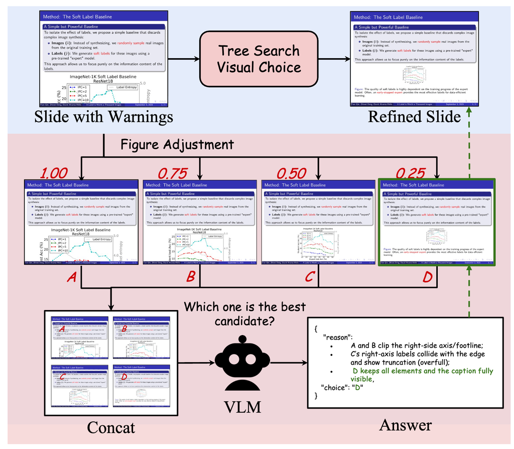 - Tree Search Visual Choice ルールベースで図とテキストのパラメータを調整して、VLMでどれがいいかを評価。それを繰り返す。 例)フォントサイズを1.25→0.75→0.5→0.25のようにスイープ
