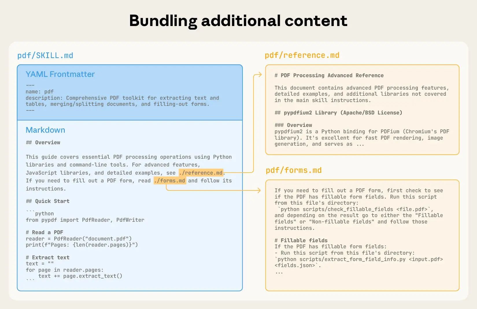 必要なときに必要な情報だけ読んでコンテキストに追加する(progressive disclosure)ことができるような構造を提供。