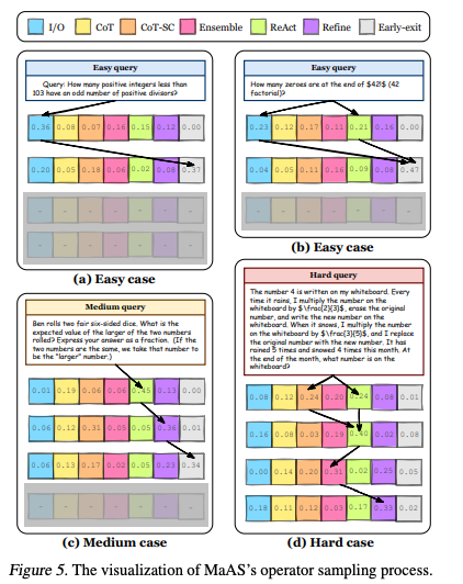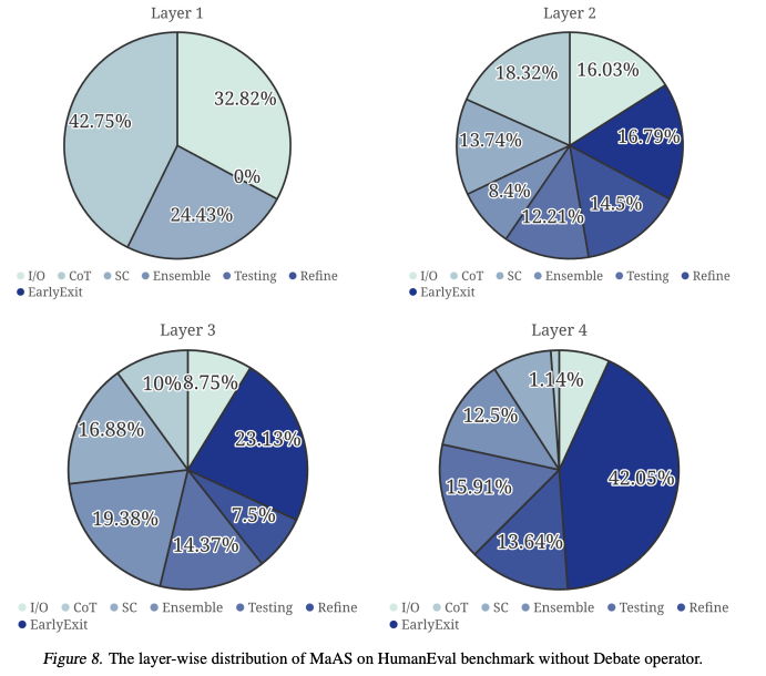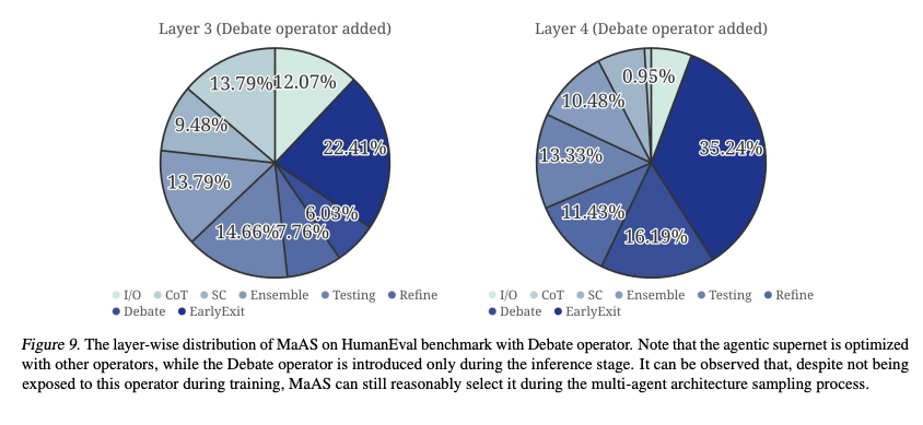 - 帰納的分析: トレーニング時に使用しなかった「Debate」オペレータを推論時に追加した場合でも、MaASはそれを適切な割合で合理的に選択・活用できることが示され、未知のオペレータへの汎化能力(帰納的能力)を持つことが実証