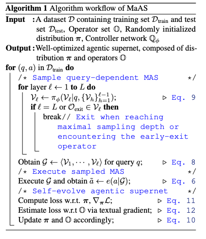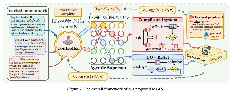 - サンプリングされたシステムでクエリを実行後、MaASはフィードバックを受け取り、スーパーネットのパラメータ化された分布とagentic operatorを共同で最適化