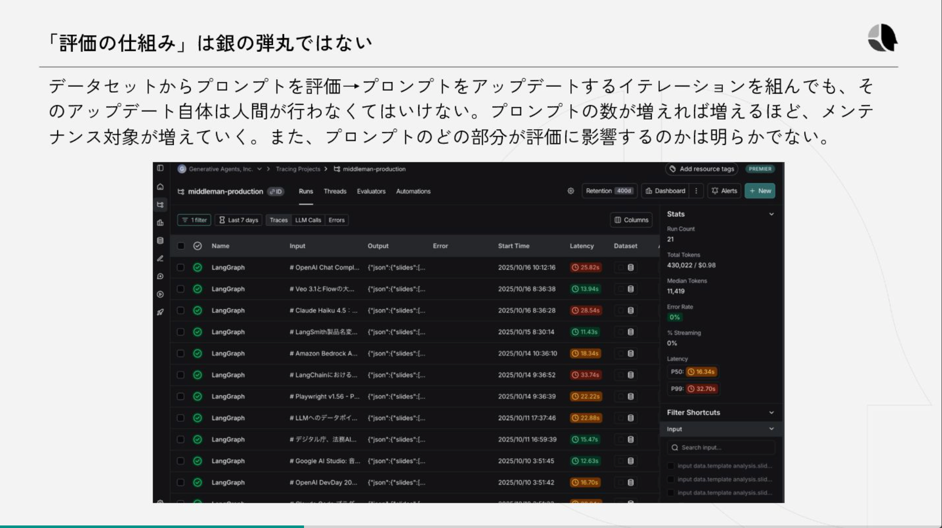 - 評価の仕組みを作ったとしてもアップデートを人手で行うのはメンテコストが高い