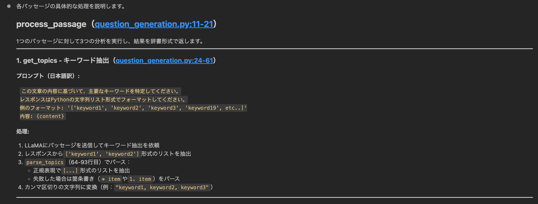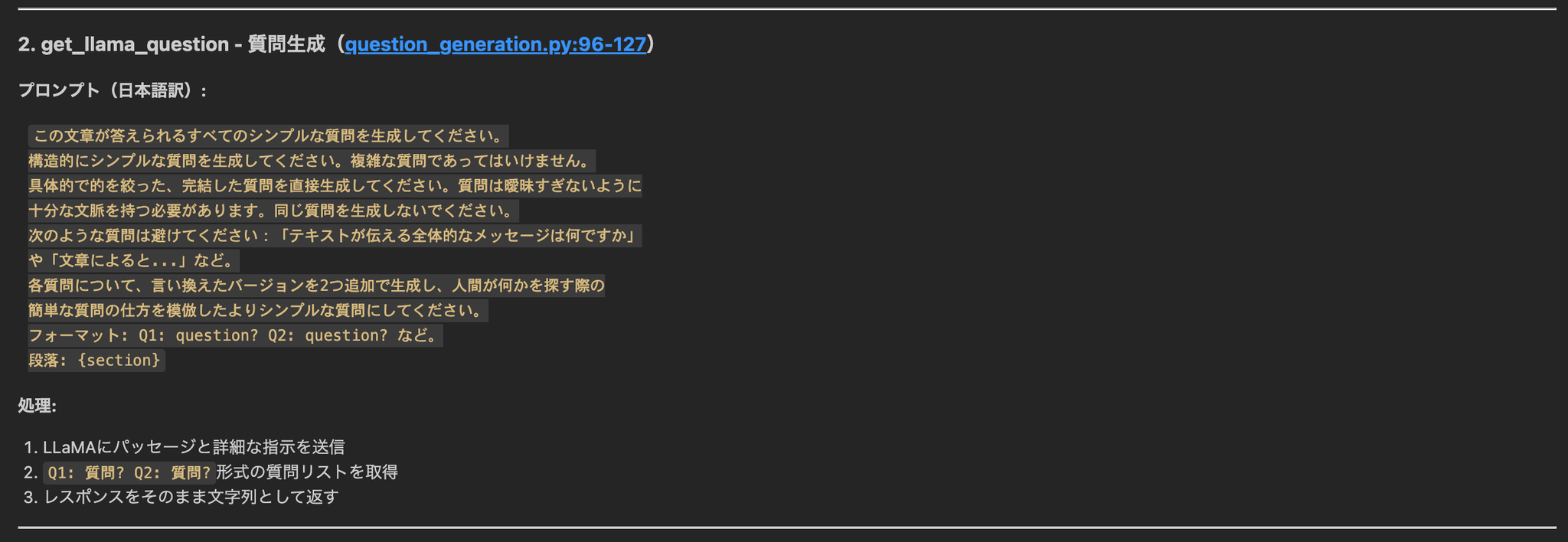 - 質問生成の実装