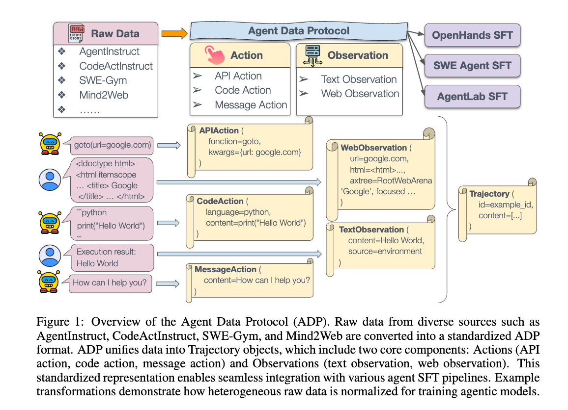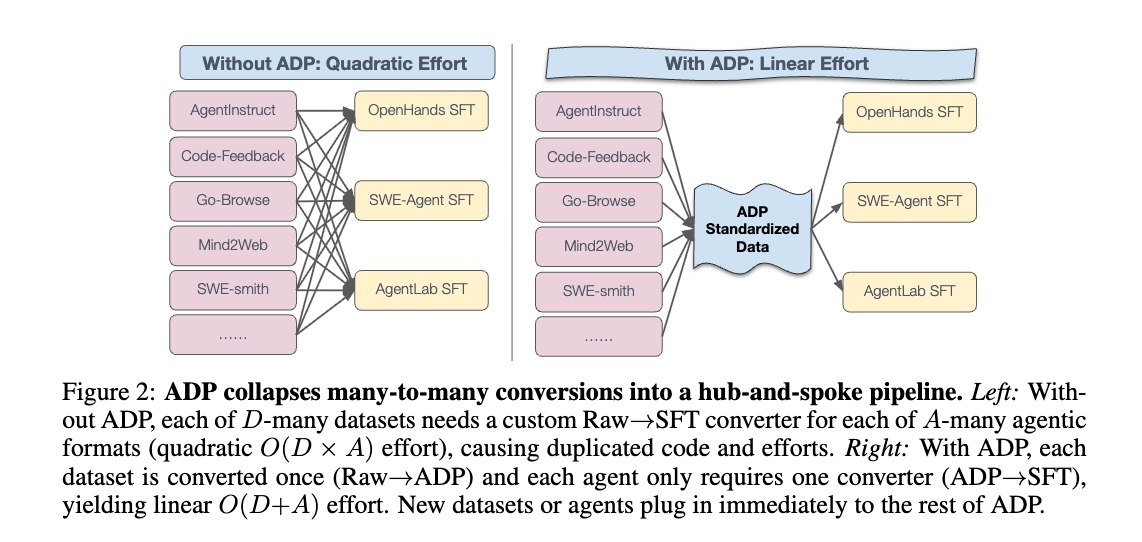 agentデータの利用における根本的な課題に対処することで、ADPはagent訓練の進歩を促進し、大規模なagentのSFTをより広範な研究コミュニティが利用できるようにすることを目指しています。