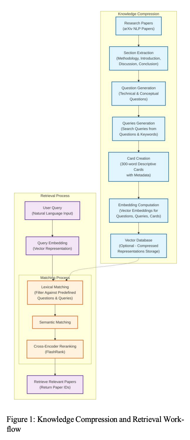 - ストレージ・計算効率の面で提案手法は大きな利点があります。全文チャンクを大量に保持する代わりに、カードと主要質問の少数埋め込みだけを索引すればよく、カード自体も数KB程度で軽量です。