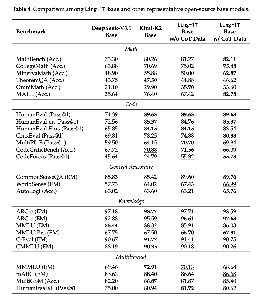 - Baseモデルの性能面はCode, Mathに強み