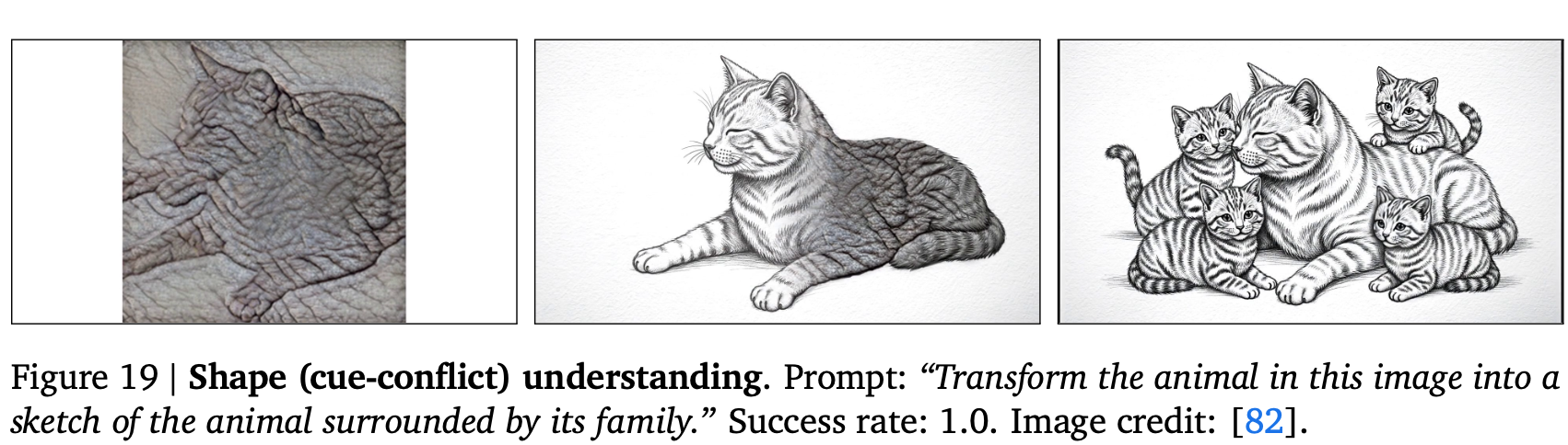 - Shape cue-conflict understanding:形状と他の視覚的手がかり(たとえばテクスチャ/質感)が矛盾する際に、モデルが何を信頼するかを評価