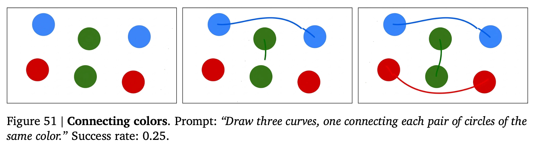 第二に、セクション4のスケール結果は、pass@10がpass@1よりも一貫して高く、まださちる兆候がないことを示している。したがって、自動検証機能による後訓練のような標準的な最適化ツールキットと組み合わせた推論時間スケーリング方法 は、パフォーマンスを向上させる可能性が高い。我々がここでテストするタスクについて、Veo 3は、命令チューニングやRLHF をまだ受けていない事前訓練された言語モデルに似ている。