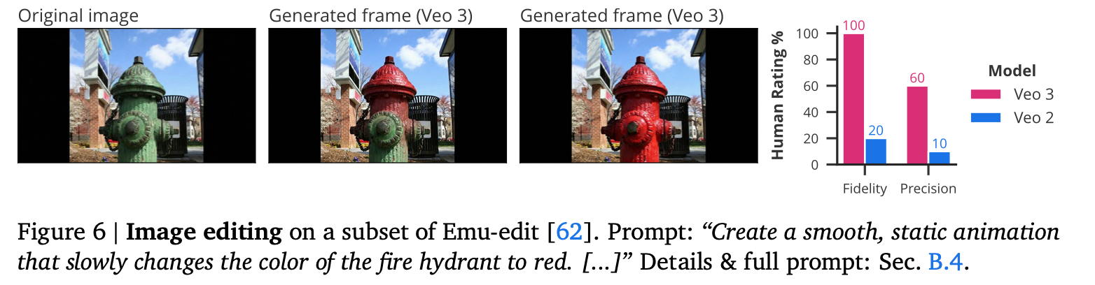 全体的な傾向として、Veo 2からVeo 3への大きな性能向上が観察された。これは Nano Banana の性能に匹敵するか上回る。