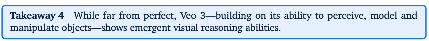完璧からは程遠いが、オブジェクトを知覚し、モデル化し、操作する能力に基づいて構築されたVeo 3は、創発的な視覚的推論能力を示す