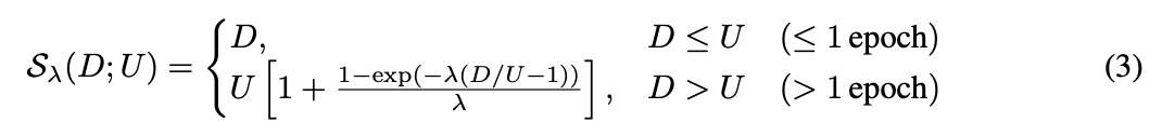 上記課題を解決するため、ATLASという新しいスケーリング則を提案。 最大の特徴は、「実効データ量( )」という概念を導入し、学習データを3つに分けて計算する点。