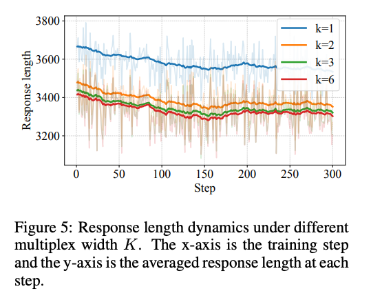 - サンプリング数を増やすとresponse lengthが短くなる。多様な情報を使ってThinkingすることで、より情報密度の高い回答が生成できるようになっている。