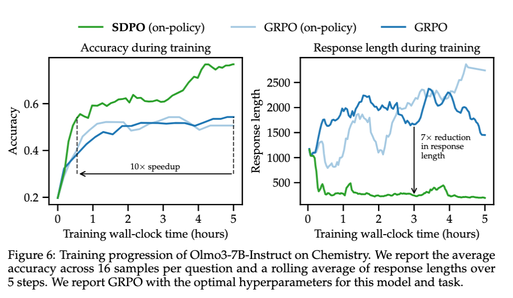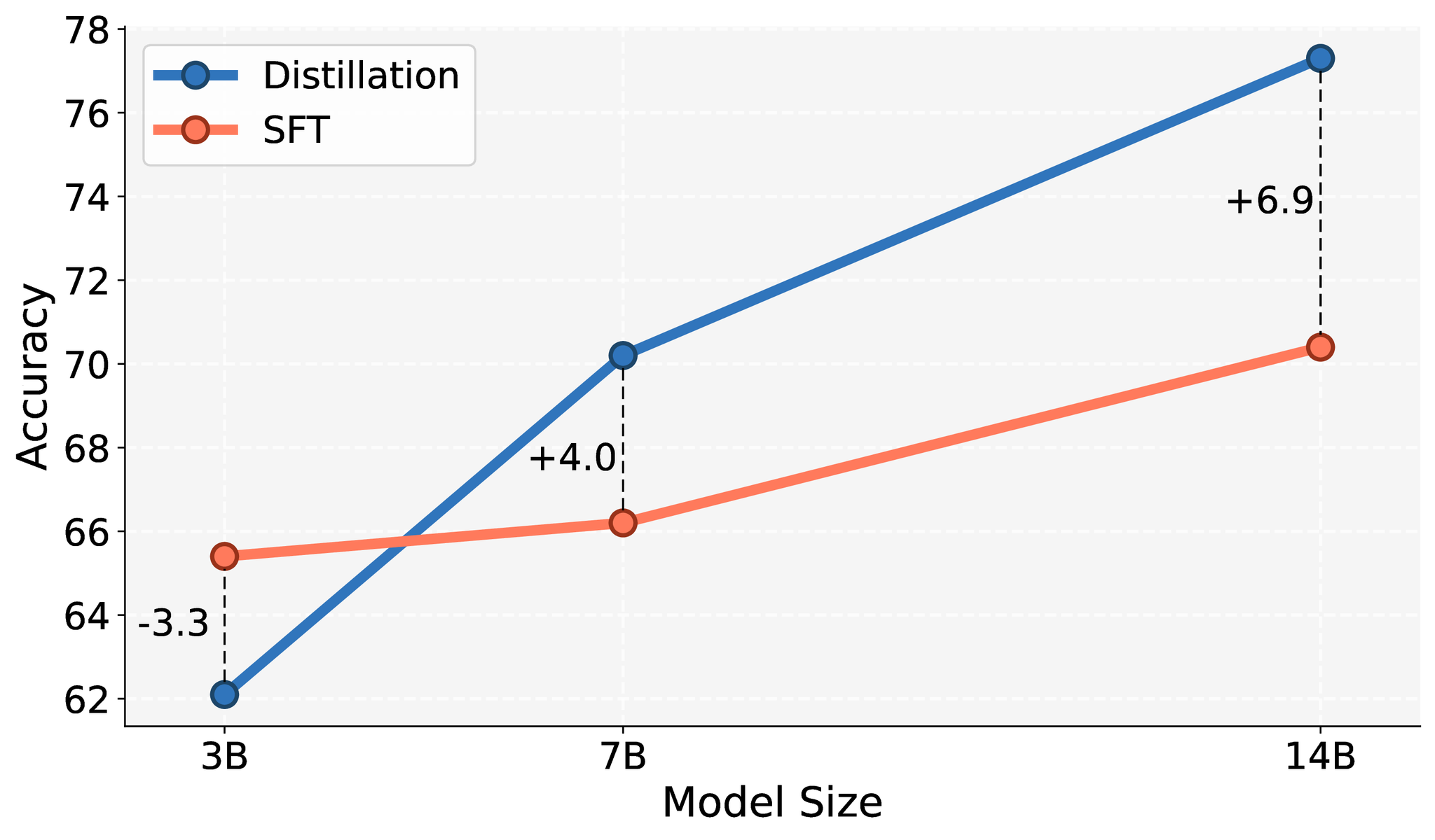 - モデルサイズへの依存 SDPOの効果はベースモデルの「In-context Learning能力」に依存する。Qwen3シリーズでの実験では、モデルサイズが大きくなるほどGRPOに対する優位性が高まることが確認された。