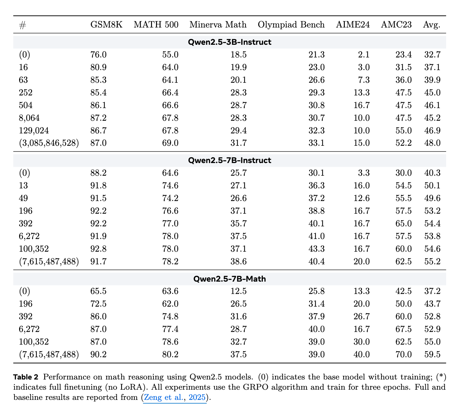 - SFTと比較して、RLは少ない情報で高パフォーマンスを達成できるという観察に基づき、TinyLoRAはRLと組み合わせることで極めて低いパラメータ数で高い性能を達成
