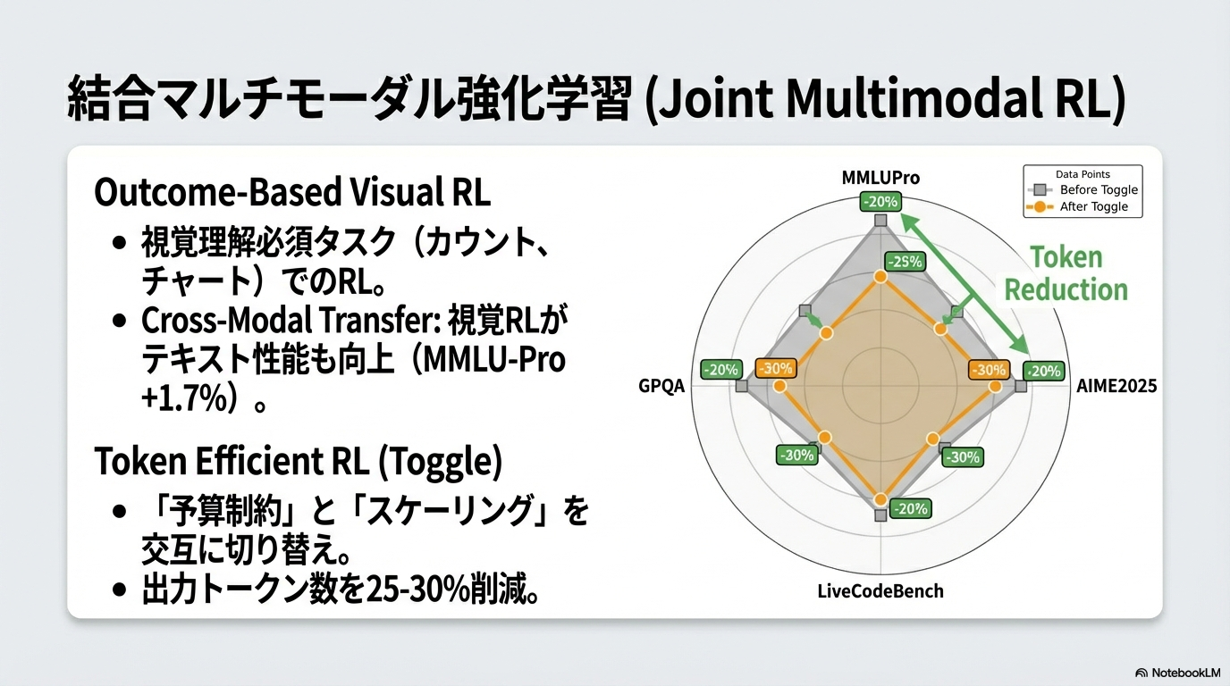 - 具体的にはテキストだけで学習させることもあれば、Visionをたまに混ぜるといった予算の管理を行う