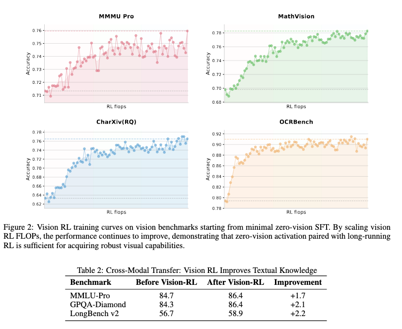 - Zero-Vision SFTの後に、アウトカムベースで視覚系のタスクを強化学習