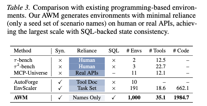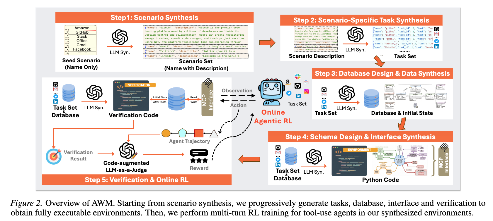 - LLMでエージェント学習用の合成環境を自動生成するフレームワークAWM(Agent World Model)