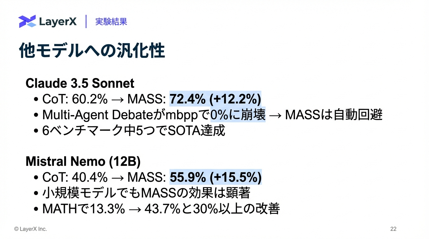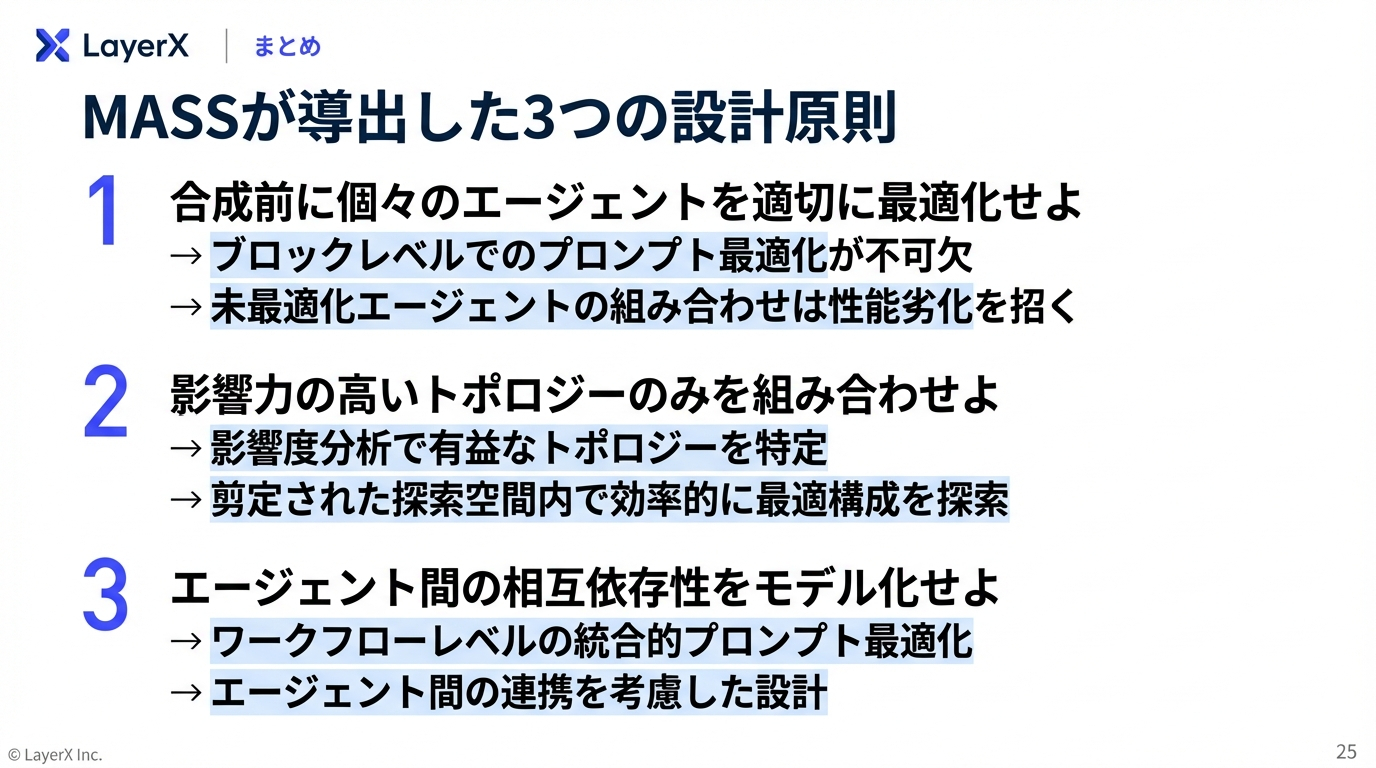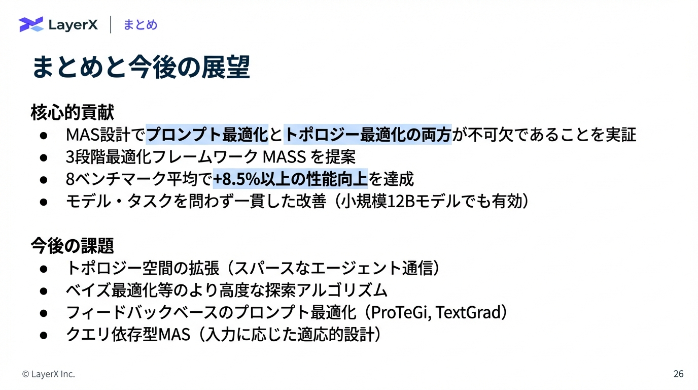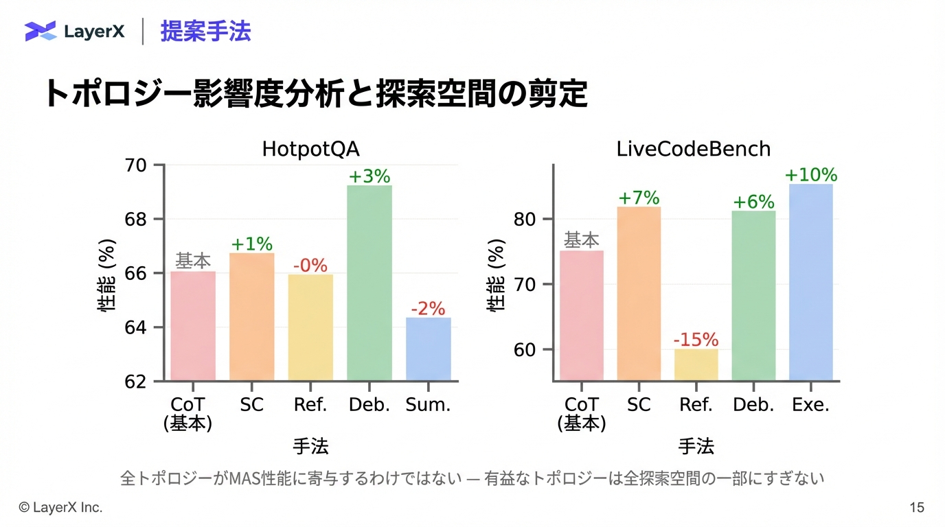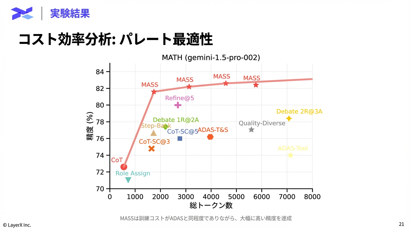 - 結論: 科学論文のメタ分析のように、誤ったデータが許されない(High-Stakesな)タスクでは、コスト増は精度担保のための保険として正当化される。一方、大量データ処理には向かない。
