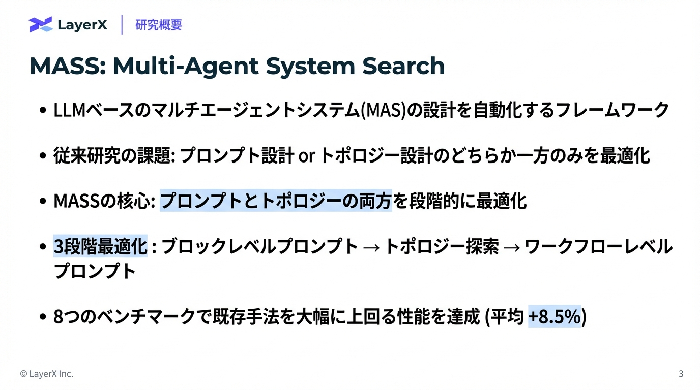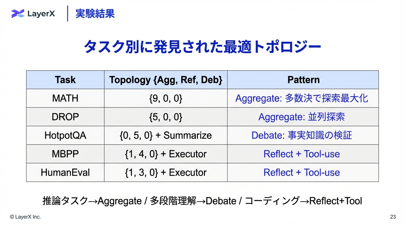 エージェントによる分散的な生成と評価がうまく組み合わされていると感じた。