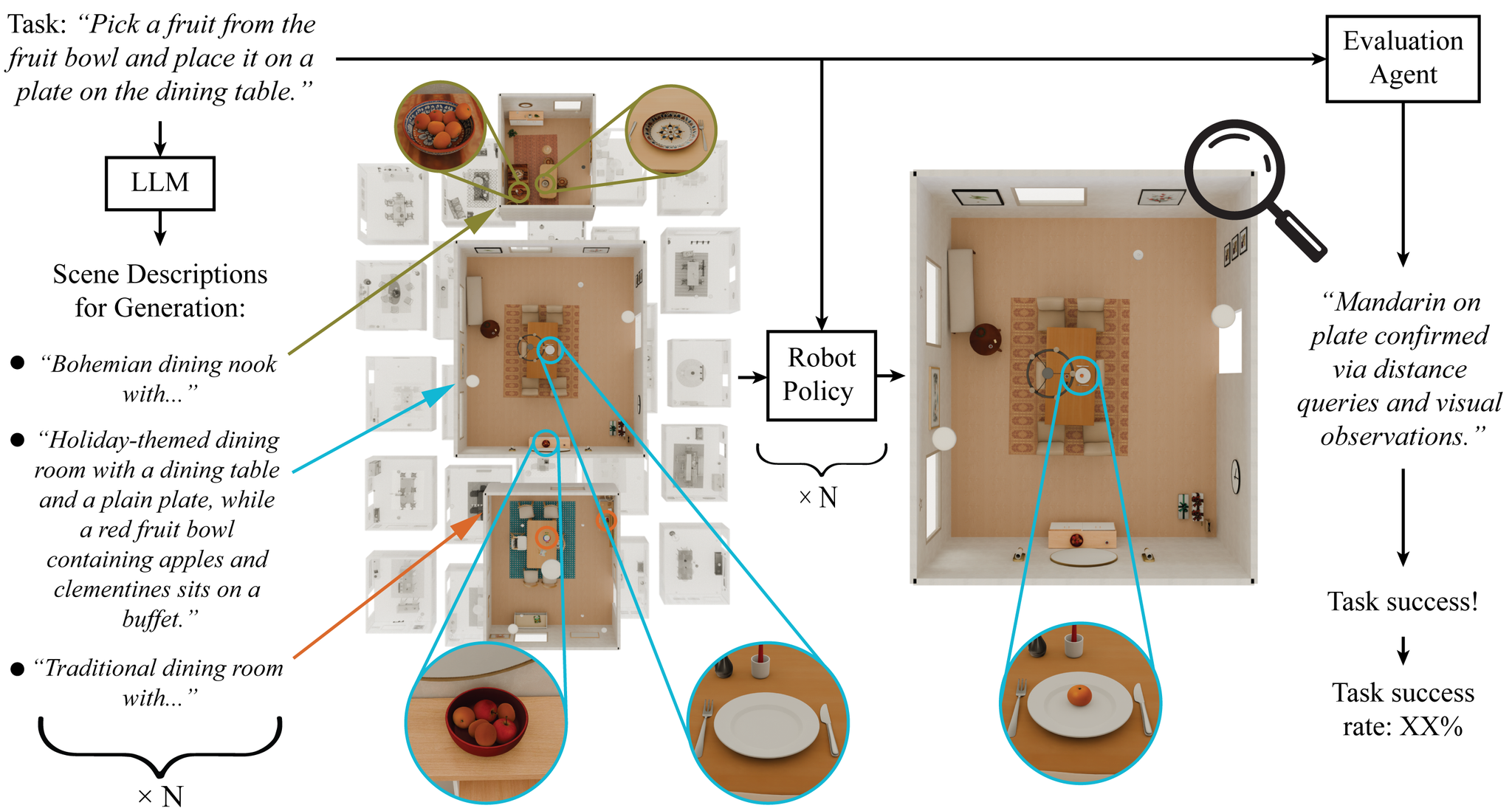 - 生成されたテキストから3Dシーンを生成して、ロボットがタスクをできるかどうかを評価
