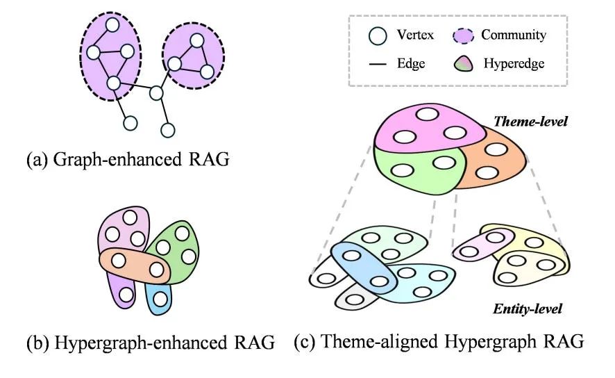 これまでのグラフ構造を取り入れたRAG手法は、主に2つのエンティティ間の関係(低次の関係)を捉えることに留まっていた。そのため、複数のエンティティ間の複雑な関係(高次の関係)や、文書全体を貫くテーマの構造を統一的に整理することが困難。