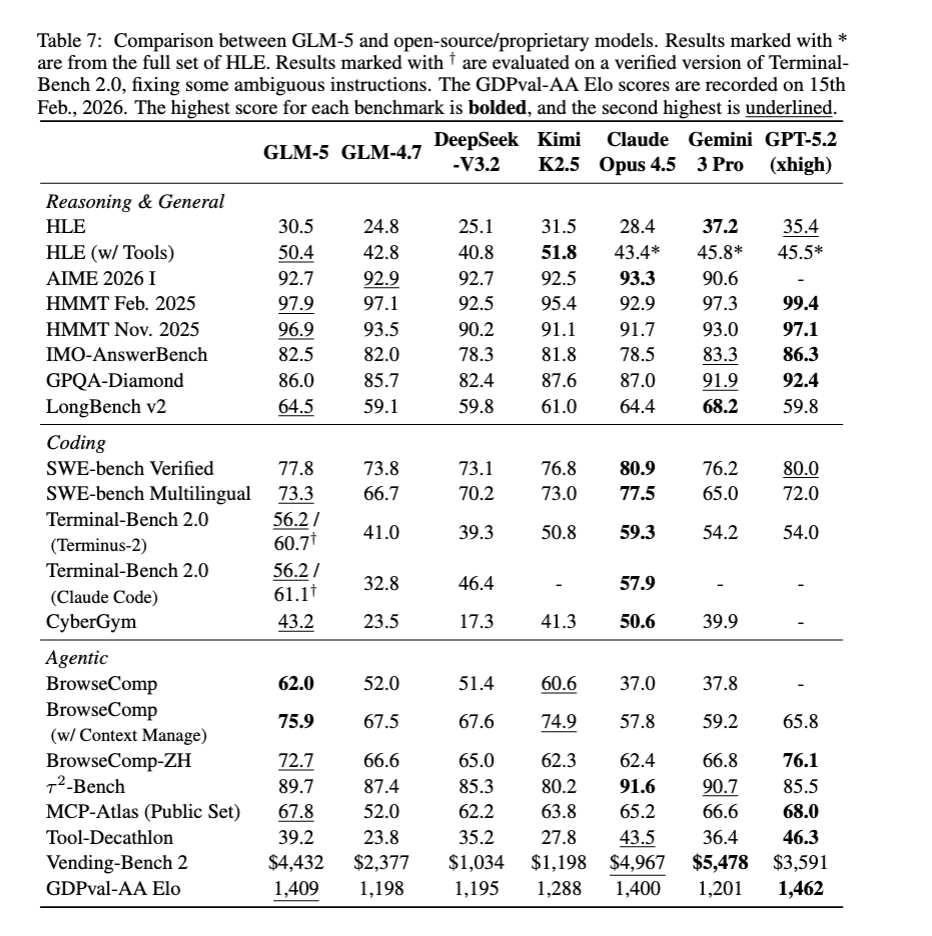 主要ベンチマーク結果(GLM-5 vs 主要モデル)