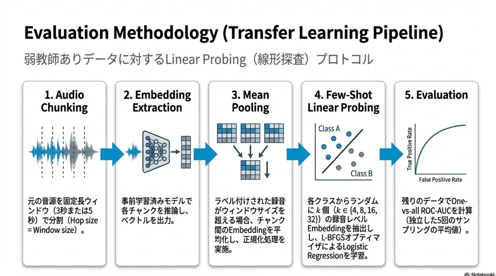 - 鳥類の音響分類タスクが十分に難しいため、それができるならくじらとかも当てれるようになるのでは?