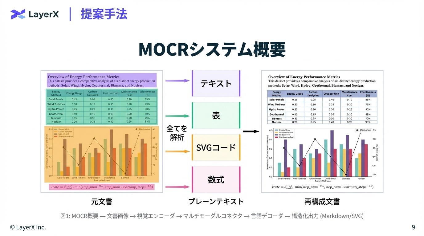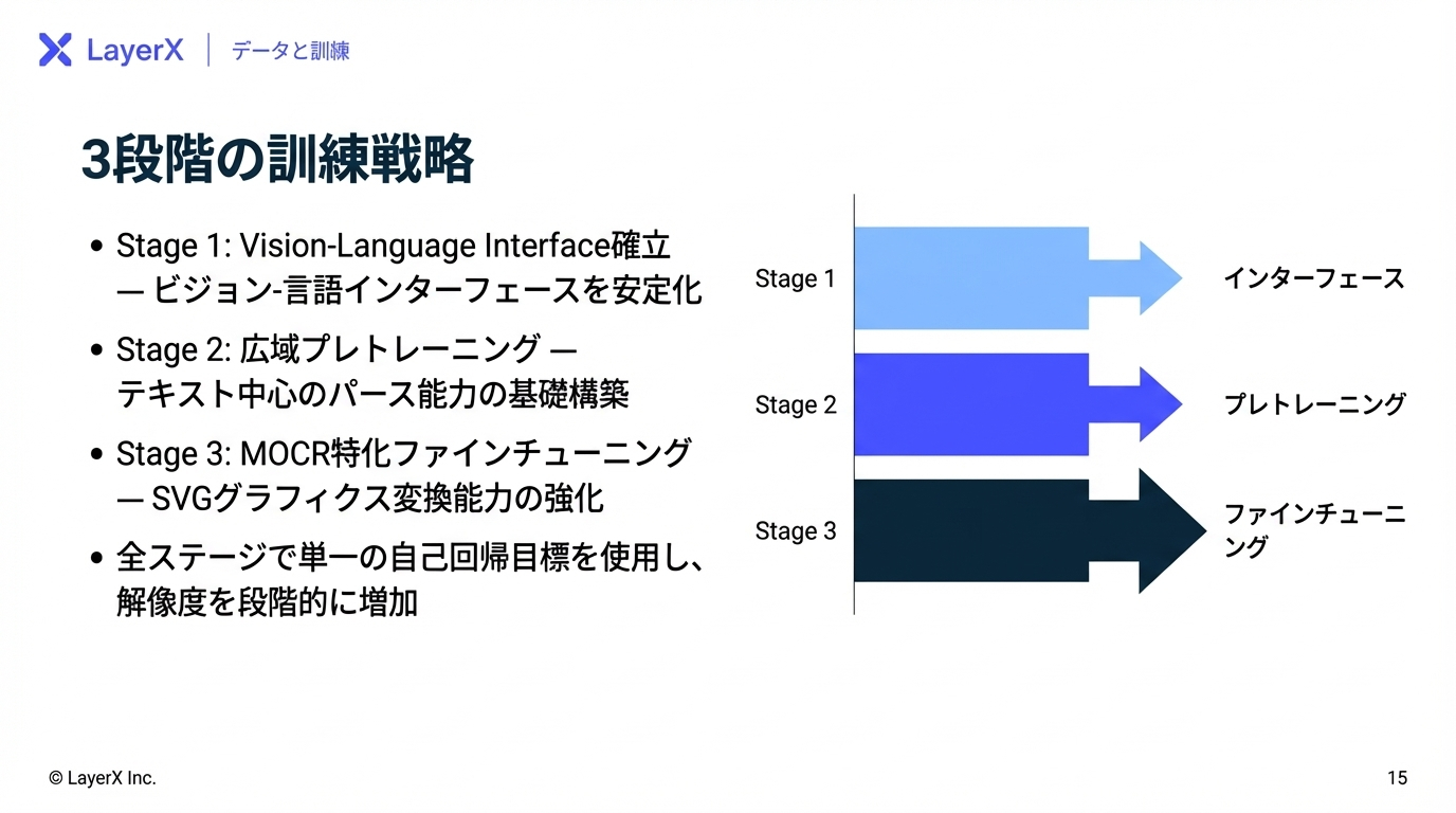 - 推論(Reasoning)プロセス: 科学や数学の問題に対して、思考プロセス(Chain of Thought)を含んだデータを事前学習の段階で組み込むことで、後からモデルを微調整する際(ポストトレーニング)に、さらに能力が伸びやすくなる。