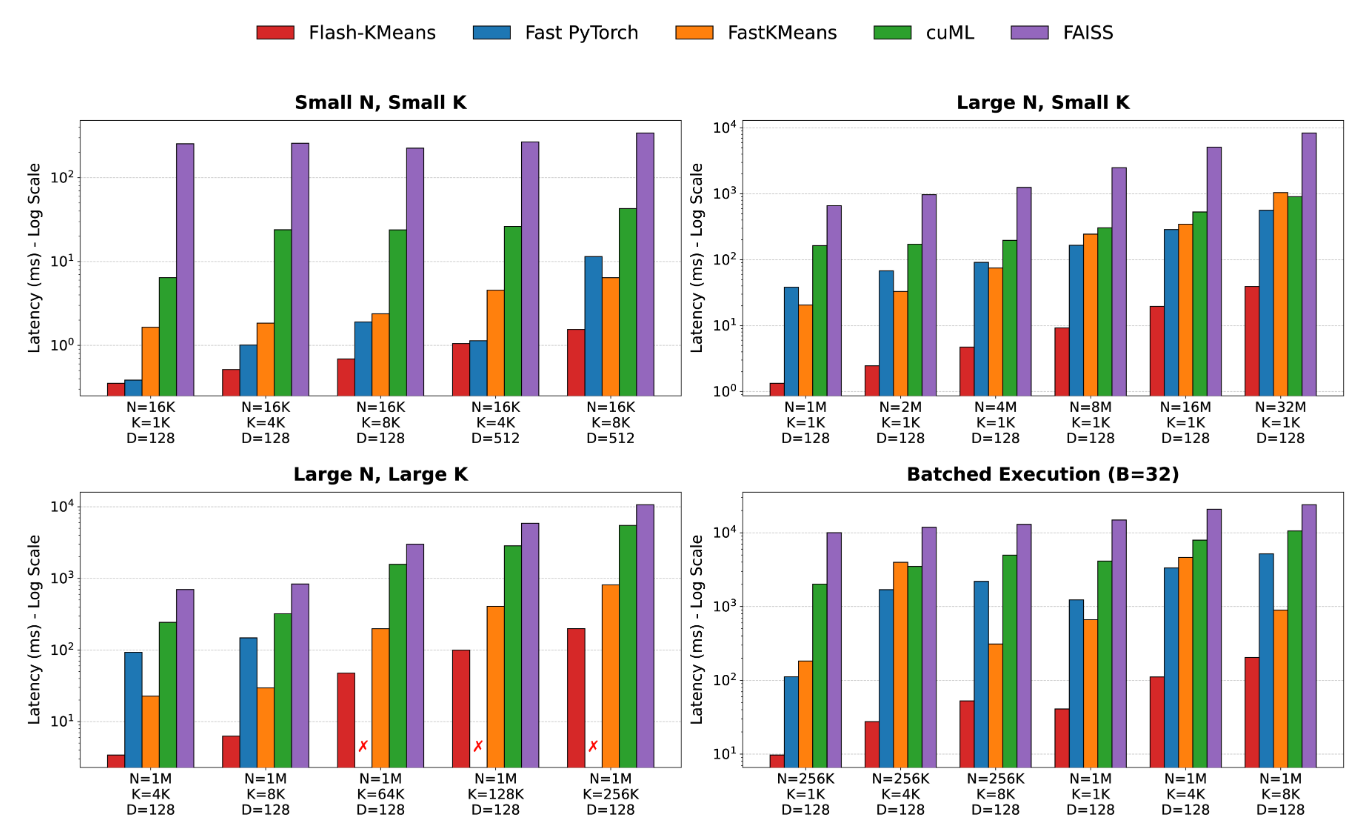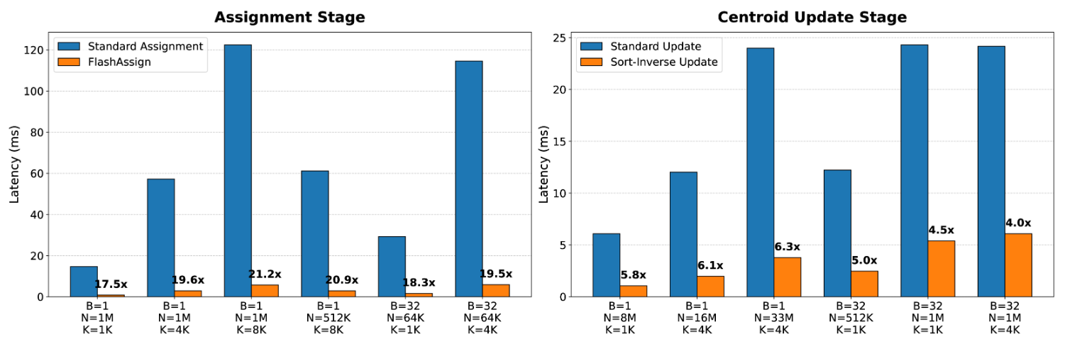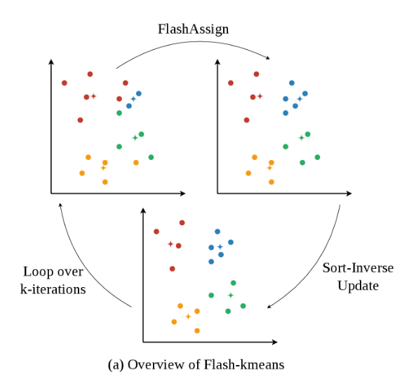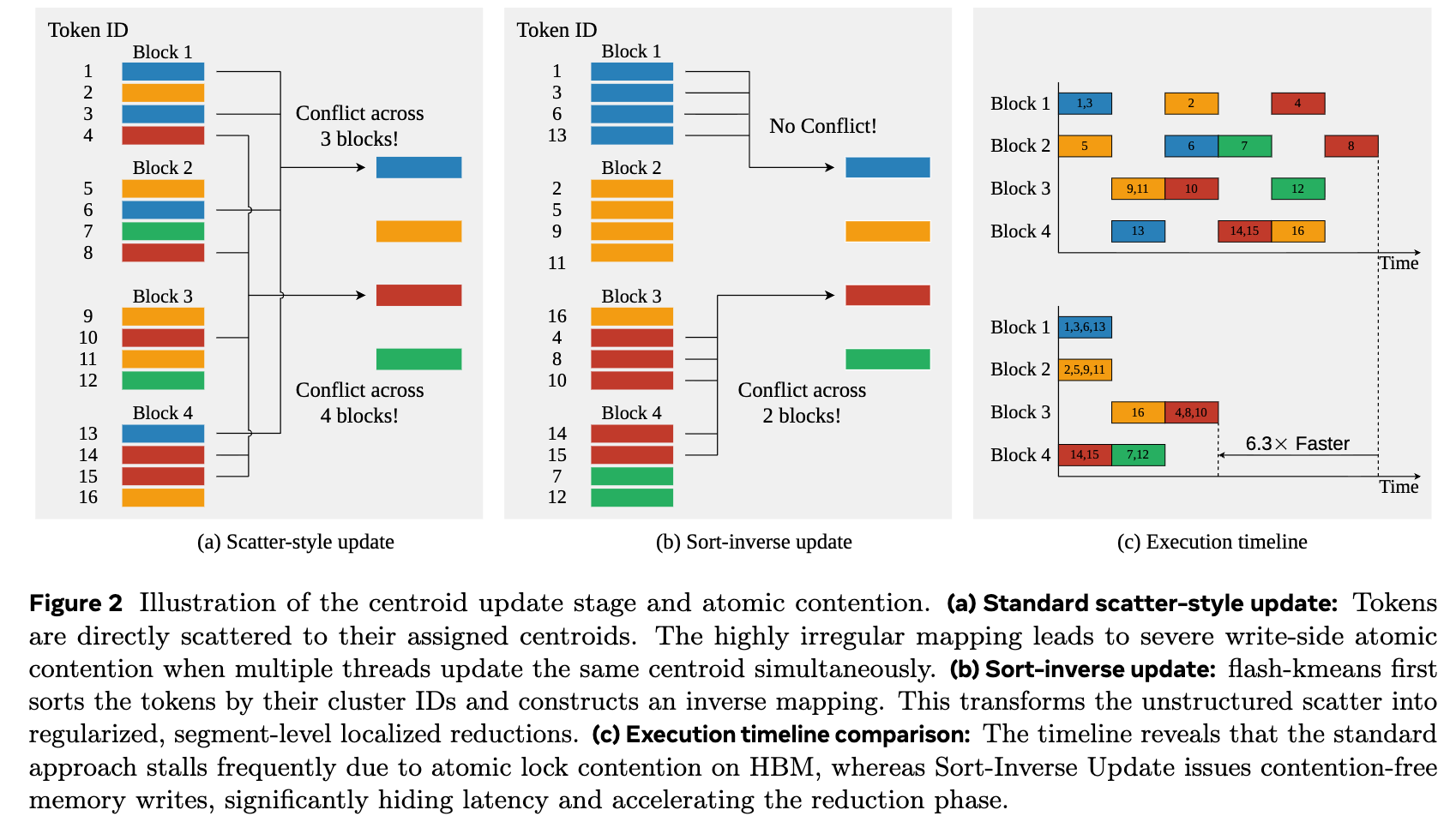 Flash-KMeansではFlashAssignとSoft-Inverse Updateで解決。さらにシステムレベルの最適化を行っている。