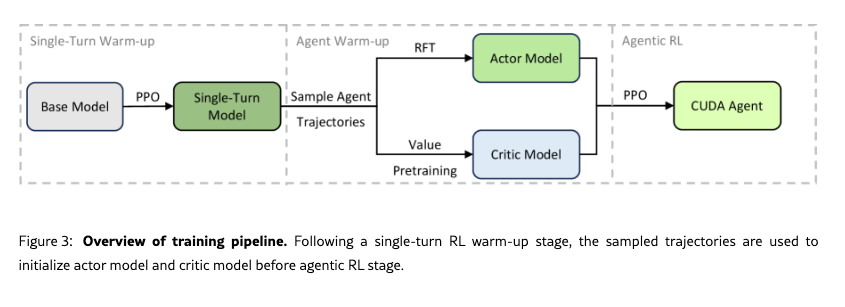 - warm-up 後のモデルで agent trajectories を収集(compile / verify / profile を含む multi-turn)