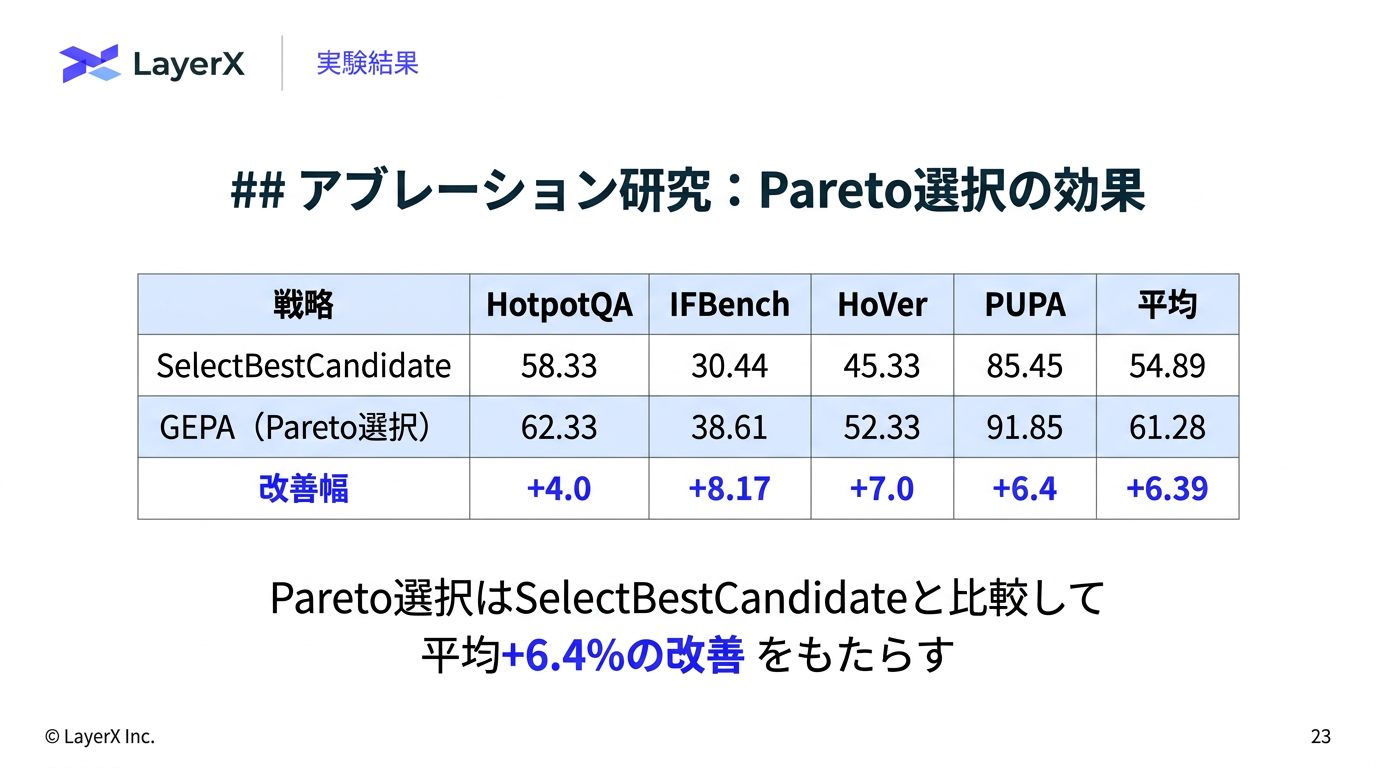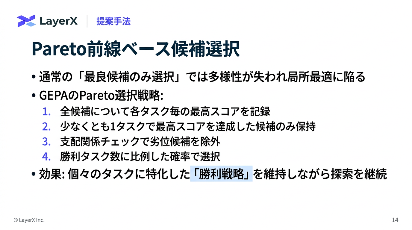 - 少なくとも1つのタスクで最高スコアを達成した候補だけを残す